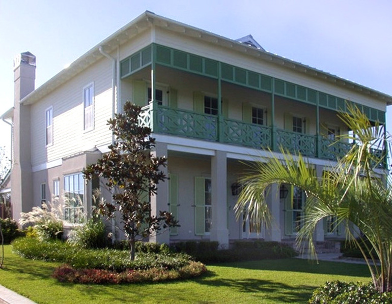 A large, 4,000 SF, single family dwelling was design for the Gabriel gated community in Kenner. In addition to the house, the site was developed with a pool, gardens, and an attached studio.